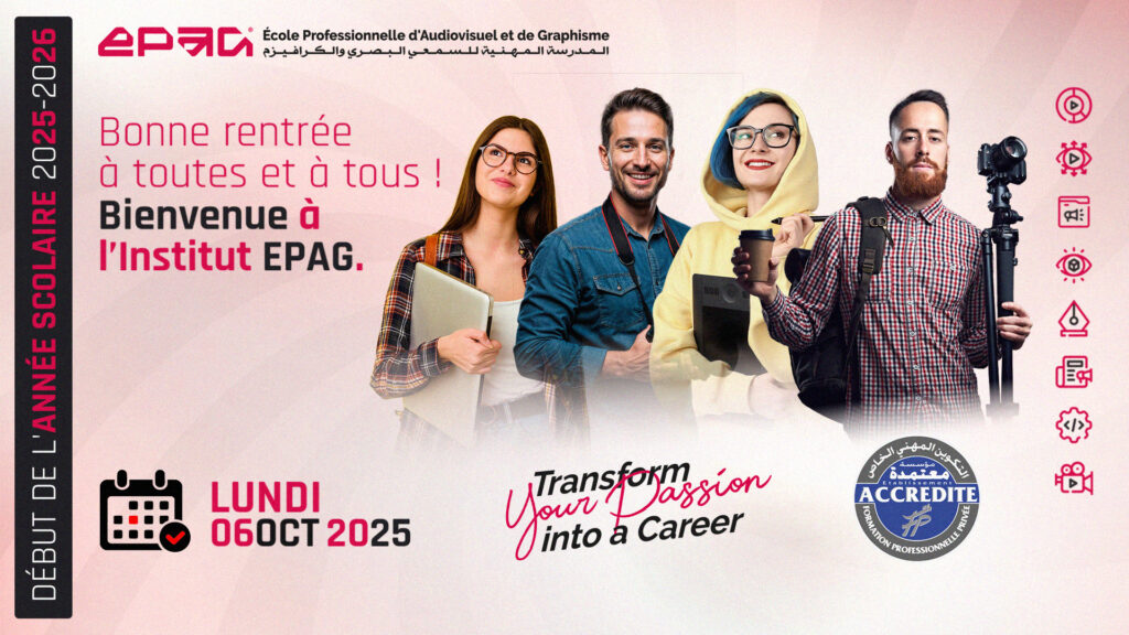 Filiale du Groupe Léonard de Vinci, l’EPAG est une école professionnelle en plein coeur de Rabat qui forme des passionnés des métiers de l’infographie, du multimédia, de l’Internet et l’audiovisuel.